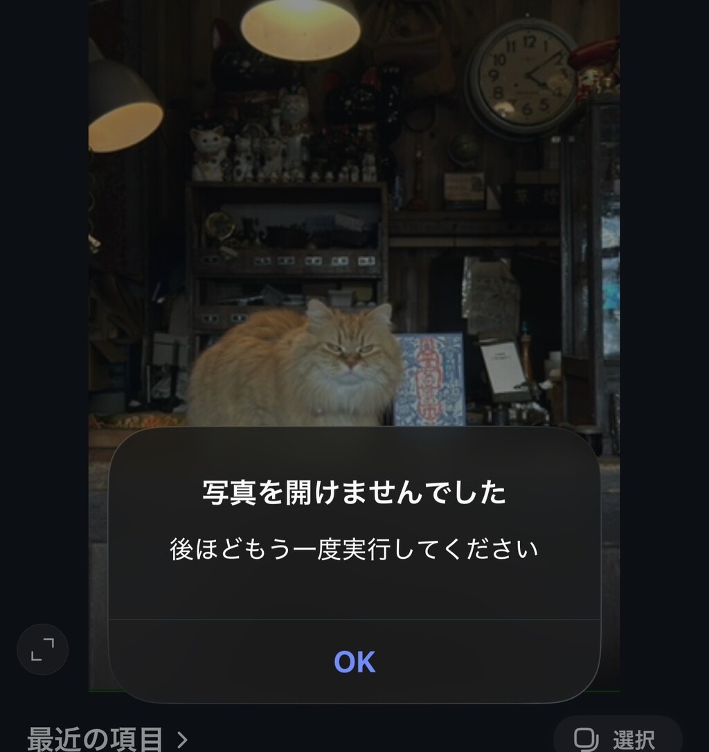 『写真を開けませんでした』と